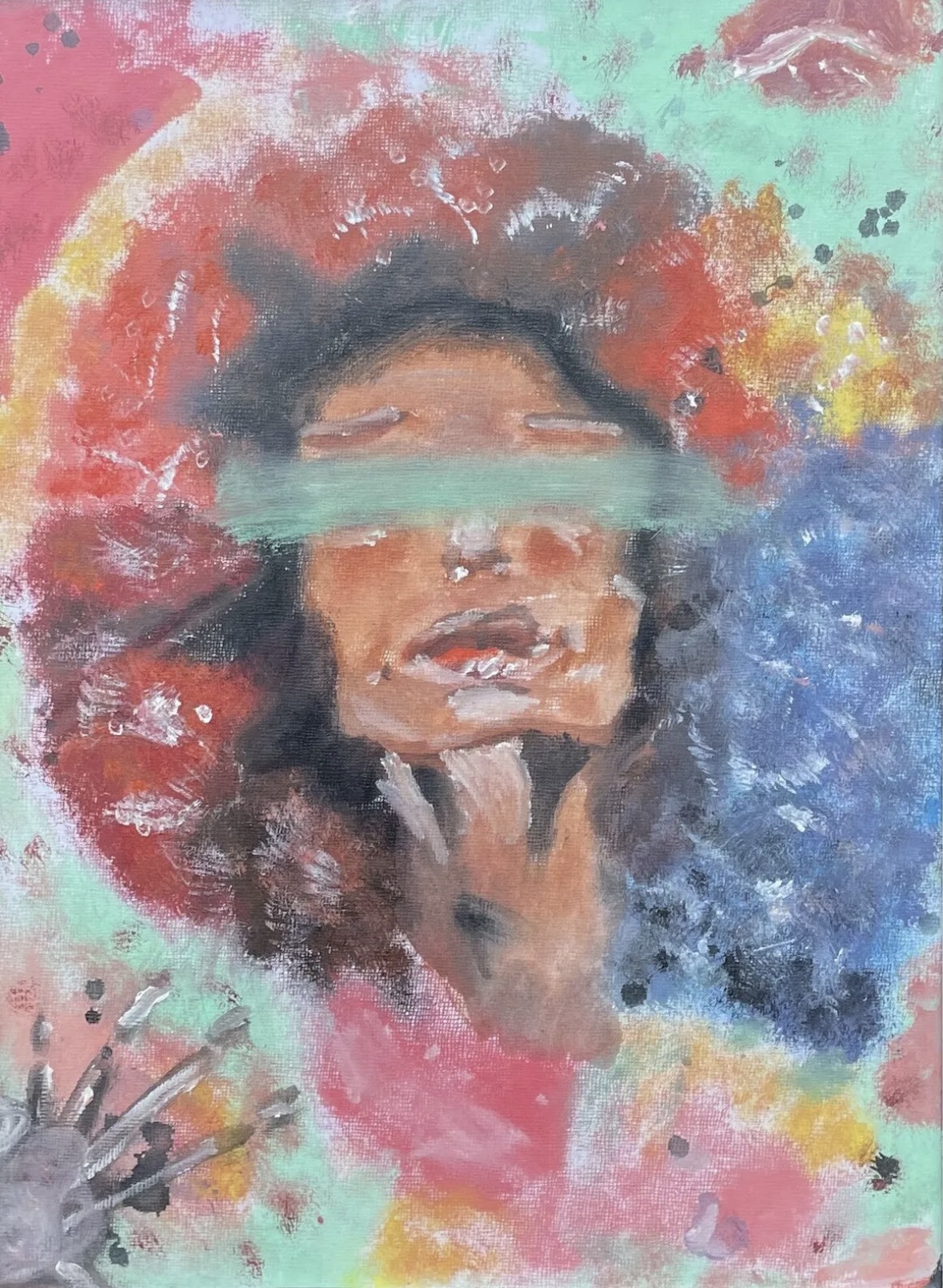 I detta verk bryter ett ansikte fram genom en sprucken och texturerna yta. Det symboliserar den inre röst som legat gömd, men som till slut tar form och gör sig hörd.
